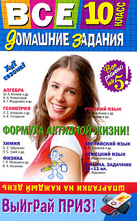 Пособие содержит выполненные домашние задания по русскому языку, английскому языку, физики, химии, геометрии, алгебре для учащихся 10-х классов общеобразовательных школ. Книга адресована родителям учащихся, самим учащимся и учителям.