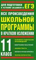 В книгу вошли все произведения школьной программы по литературе за 11 класс. Пособие содержит краткое содержание самих произведений (как отечественных, так и зарубежных авторов), отрывки из критических статей, биографические сведения об авторах, анализ ...