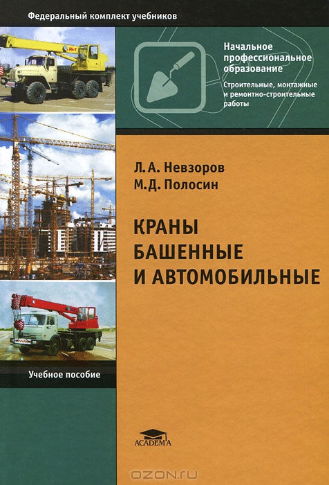 Изложены конструктивные исполнения, устройство и технические характеристики башенных и автомобильных кранов, приведены подробные сведения о составных частях, сборочных единицах, механизмах и приборах безопасности существующих типоразмерных рядов кранов, ...