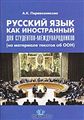 Учебное пособие на материале текстов об ООН предназначено для иностранных учащихся, обучающихся по специальностям международного профиля. Цель обучения - комплексное формирование языковой, речевой и предметной компетенции, необходимой учащимся для ...