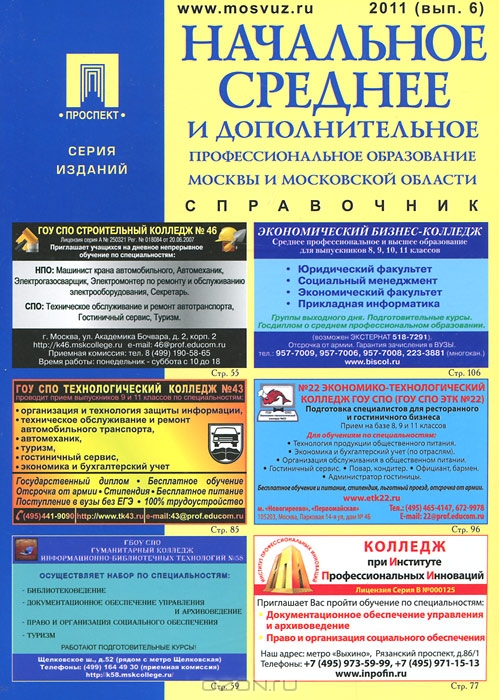 Вашему вниманию предлагается справочник 2011 года "Начальное среднее и дополнительное профессиональное образование Москвы и Московской области".