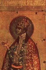 Дмитрий Иванович (19.10.1582, Москва, - 15.5.1591, Углич), сын царя Ивана IV Грозного и Марии Нагой. Получил в удел Углич, куда был отправлен вместе с матерью после смерти отца (1584) Борисом Годуновым, опасавшимся соперничества Нагих в борьбе за власть. Погиб в Угличе 15 мая 1591 г. Официальное следствие, проведенное комиссией под руководством князя Василия Шуйского пришло к выводу, что царевич стал жертвой несчастного случая, наткнувшись на нож во время приступа эпилепсии. Однако существовали серьезные подозрения в том, что царевич был убит по приказу Бориса Годунова, желавшего устранить претендента на престол. Легенда о чудесном спасении Дмитрия была широко использована самозванцами. После свержения Лжедмитрия I правительство царя Василия Шуйского устроило торжественное перезахоронение тела царевича в Архангельском соборе Московского Кремля. Русской православной церковью он был причислен к лику святых.