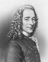 Вольтер (Voltaire) [псевдоним; настоящие имя и фамилия Мари Франсуа Аруэ (Arouet)] (21.11.1694, Париж, - 30.5.1778, там же), французский писатель, философ, историк. Член французской академии (1746). Сын нотариуса; окончил иезуитский коллеж. В 1717 заточён в Бастилию за эпиграммы против регента. В 1726 выслан в Англию. Английские впечатления Вольтера отражены в "Философских письмах" (1733), в которых он показал, что общественный строй Англии превосходит французский, где господствует абсолютизм; это сочинение было осуждено французским парламентом на сожжение (1734). В течение 10 лет Вольтер жил в доме маркизы дю Шатле. В 1745 Вольтер был приближен ко двору Людовика XV, в 1750-1753 - прусского короля Фридриха II. В 1754 поселился близ Женевы, но не нашёл себе места и в кальвинистской республике: с 1758 обосновался в своём имении Ферне на границе Франции и Швейцарии. Слова "раздавите гадину" (т. е. католическую церковь) - девиз Вольтера этих лет. Его творчество подчинено борьбе с религиозной нетерпимостью и мракобесием. Он выступал в защиту жертв религиозного фанатизма (дело Каласа, 1762). В 60-е гг. наряду с идеалом просвещённой монархии Вольтер выдвигал идеал республики как наиболее разумной формы государственного устройства ("Республиканские идеи", 1762). Вольтер являлся наиболее ярким выразителем прогрессивного общественного мнения Европы. Ферне стал местом паломничества. С Вольтером были вынуждены считаться европейские монархи; Екатерина II, Фридрих II, Густав III и другие домогались его дружбы. Возвращение в Париж в феврале 1778 превратилось в триумф писателя. По своим философским взглядам Вольтер - деист, последователь Дж. Локка, И. Ньютона. Придерживаясь материалистического объяснения природы, Вольтер не отказывался от идеи бога как первопричины, сообщившей материи движение и способность ощущать и мыслить. В религии Вольтер видел и узду моральную и социальную, необходимую, чтобы охранять частную собственность и общественный порядок. Исторические труды "Век Людовика XIV" (изд. 1751 и 1768), "Опыт о нравах и духе народов" (изд. 1756), "История Российской империи в царствование Петра Великого" (1759-63) явились важной вехой европейской историографии. Основное внимание Вольтер уделял не королям и полководцам, а истории самих народов, их нравам, обычаям, культуре. Отвергая идею провиденциализма, он выдвигал принцип прогрессивной эволюции человечества, понимая, однако, прогресс абстрактно-идеалистически.