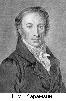 Карамзин Николай Михайлович (1766 - 1826 гг.) - писатель, историк, журналист, член Российской академии (1818 г.), почетный член Петербургской академии наук. Из дворян. Обучался в родном Симбирске в пансионе Фовеля. 13-летним мальчиком его отправили в Москву в пансион профессора Московского университета И.М. Шадена. Там он изучал немецкий и древние языки, философию, риторику, логику, поэтику. Одновременно посещал лекции в Московском университете. После окончания пансиона по настоянию отца переехал в Петербург, где в 1781 г. был определен на службу в лейб-гвардии Преображенский полк. После смерти отца вышел в отставку и уехал в Симбирск, где вступил в масонскую ложу "Золотого венца". Вскоре Н.М. Карамзин уезжает в Москву и вступает в московскую масонскую ложу "Дружеское ученое общество". Общение с московскими масонами способствовало приобщению Н.М. Карамзина к классической английской литературе, произведениям французских просветителей. Большое влияние на Н.М. Карамзина оказывал русский просветитель масон Н.И. Новиков. В издаваемом Н.И. Новиковым журнале "Детское чтение для сердца и разума" стал публиковать свои переводы, свои первые повести. Когда Н.И. Новиков и его друзья-масоны стали преследоваться властями, Н.М. Карамзин в 1789 г. отправился в путешествие по Западной Европе. Он посетил Германию, Швейцарию, Великобританию, Францию. Познакомился с европейской культурой и наиболее видными ее представителями. Одним из результатов зарубежного путешествия Н.М. Карамзина стал его отход от масонства. После возвращения из европейского путешествия в 1801 г. написал "Письма русского путешественника", которые стали замечательным произведением русской литературы. Европейское путешествие Н.М. Карамзина побудило его к изданию журнала, знакомившего русскую общественность с современной литературой и искусством. В 1790 г. стал издавать свой "Московский журнал", в который привлек лучшие литературные силы России. В журнале печатались переводы иностранных писателей, заметки, критические статьи, рецензии на новые книги и спектакли. Но общество зачитывалось произведениями самого Н.М. Карамзина: "Письма русского путешественника", "Бедная Лиза", Наталья, боярская дочь" и другие произведения принесли Н.М. Карамзину подлинную славу. Н.М. Карамзин стал родоначальником нового в русской литературе направления - сентиментализма. Н.М. Карамзин стал вести светскую жизнь: был желанным гостем в домах московской знати, часто посещал Английский клуб, встречался с литературными друзьями. В доме известного собирателя древностей графа А.И. Мусина-Пушкина Н.М. Карамзин познакомился с его собранием древних рукописей. В 1802 г. основал первый в России частный литературно-политический журнал "Вестник Европы", ставивший наряду с художественно-критическими и общественно-политические вопросы. С конца 90-х гг. Н.М. Карамзин все более занимается профессионально изучением родной истории. В 1798 г. он пишет: "Похвальное слово Петру I", в 1801 г. - "Историческое похвальное слово Екатерине II" и "О московском мятеже в царствование Алексея Михайловича" и др. В 1803 г. именным указом императора Александра I Н.М. Карамзин был назначен официальным историографом "для сочинения полной Истории Отечества". Взяв за образец сочинения Тацита, Д. Юма, У. Робертсона, Н.М. Карамзин, в отличие от немецких исследователей, создав