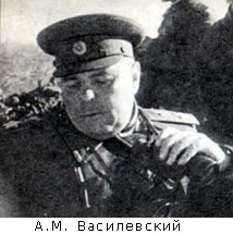 Василевский Александр Михайлович (1895-1977 гг.) - Маршал Советского Союза (1943 г.), дважды Герой Советского Союза (1944, 1945 гг.). Окончил духовную семинарию, затем юнкерское училище в Москве. В 1915 г. в чине прапорщика отправлен на первую мировую войну, принимал участие в знаменитом Брусиловском прорыве. На поле боя показал себя храбрым и умелым воином. В 1919 г. начал службу в Красной Армии, которой тогда не хватало знающих профессионалов. В годы гражданской войны командует батальоном, затем становится помощником командира полка. Принимал участие в советско-польской войне. С 1931 г. служит в Управлении боевой подготовки Красной Армии, в 1940 г. - заместитель начальника Оперативного управления Генштаба. В 1941 г. он становится заместителем начальника Генерального штаба. А. М. Василевский принимал активное участие в планировании Московской операции. В 1942 г. возглавляет Генеральный штаб и одновременно является заместителем наркома обороны. А.М. Василевский являлся выдающимся стратегом, спланировал ряд успешных боевых операций. В частности, при его активном участии была спланирована Сталинградская операция. В 1943 г. координировал действия советских фронтов в ходе Курской битвы. В 1943 г. ему было присвоено звание Маршала Советского Союза. В 1944-1945 гг. принимал участие в планировании всех крупных военных операциях. В 1945 г. командующий 3-м Белорусским фронтом. Когда СССР вступил в войну против Японии, А.М. Василевский был назначен главнокомандующим советскими войсками на Дальнем Востоке. Мощная японская Квантунская армия войсками А.М. Василевского была разгромлена практически за одну неделю. С 1946 г. начальник Генерального штаба. В 1949-1953 гг. министр Вооруженных сил (военный министр) СССР, в 1953-1957 гг. 1-й заместитель министра обороны.