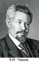 Чернов Виктор Михайлович (1873-1952 гг.) - политический деятель, социолог, публицист, В революционном движении с конца 1880-х гг. В начале 1900-х гг. один из основателей партии эсеров, её теоретик и член ЦК. Редактор ряда партийных изданий. В мае-августе 1917 г. - министр земледелия Временного правительства. 5 января 1918 г. избран председателем Учредительного собрания. В гражданскую войну участник ряда антибольшевистских организаций. С 1920 г. --в эмиграции. Во время второй мировой войны участник Движения Сопротивления во Франции. Создал труды по философии, социологии, политэкономии и истории. Также автор мемуаров "Записки социалиста-революционера" (т.1,1922; т.2,1953).